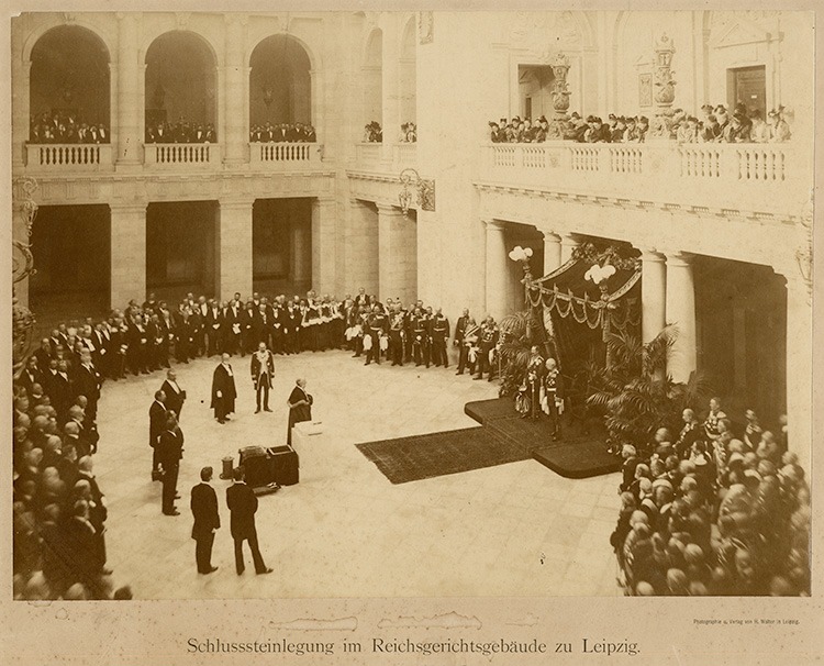 A total of 119 designs are submitted from Germany, Austria and Switzerland in the competition to construct the Imperial Court of Justice building. The eleven-strong competition jury unanimously endorses the plans by the architects Ludwig Hoffmann (1852–1932) and Peter Dybwad (1859–1921). Hoffmann is then commissioned by the Office for National Justice to complete the plans and oversee construction.